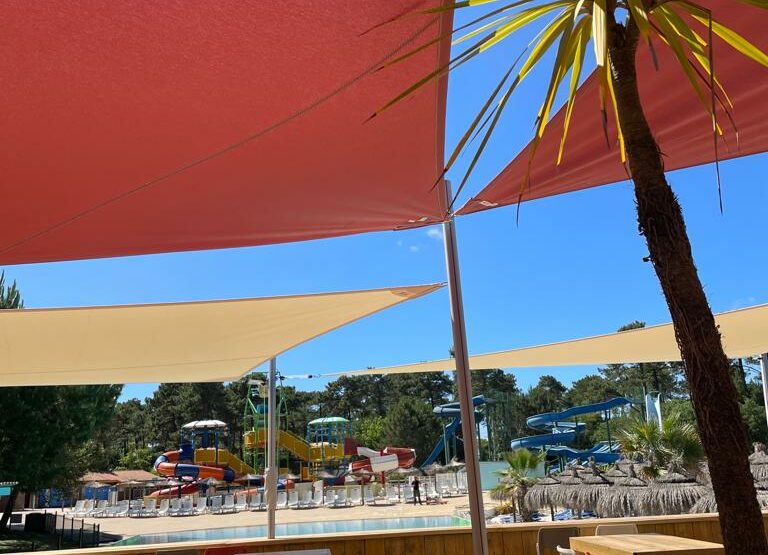 Les propriétaires de ce parc aquatique, souhaitaient une installation fortement inspirée du monde du nautisme, moderne, et simple à mettre en place. Nous avions pour objectif de créer un espace de détente élégant ombragé sur un Rooftop .