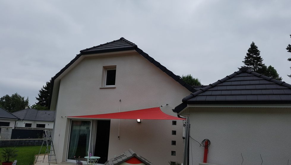 En utilisant la structure existante de leur maison, et en s’adaptant au plus juste avec l’ajout de 2 poteaux, ces voiles d’ombrage viennent parfaitement s’intégrer dans l’espace.