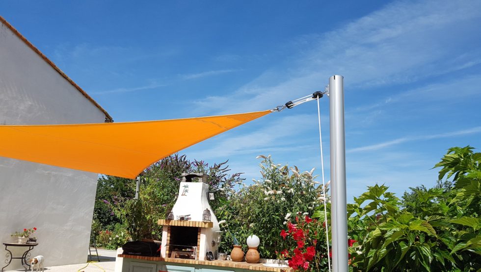 – Mâts en aluminium fabriqués spécifiquement pour les voiles d’ombrage par la société Soromap.